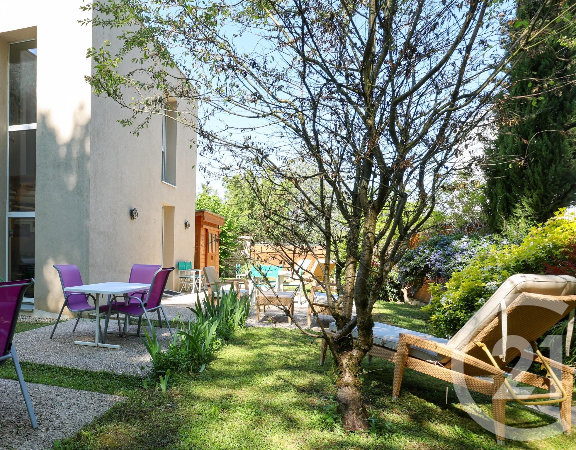 Ce bien accessible PMR (avec chambre aménageable de plain-pied) pouvant éventuellement accueillir une profession libérale est niché dans un écrin de verdure en zone verte protégée et bénéficie ainsi d'un beau jardin clos et arboré d'environ 300m² sans vis à vis au sein duquel se trouve une belle terrasse avec chalet de jardin.
